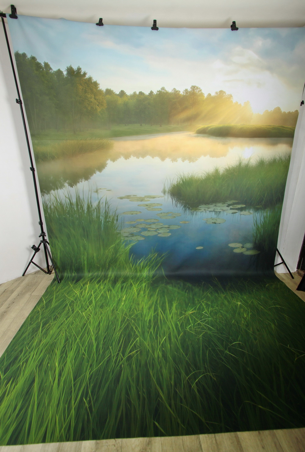Изображение представляет собой живописный пейзаж болотистой местности на рассвете или закате. На пер..