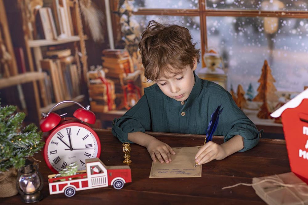 На изображении представлен интерьер комнаты, оформленной в преддверии Рождества. В центре композиции расположено большое окно с деревянной рамой, за которым виден обильный снегопад. Снег падает крупными хлопьями, создавая ощущение уюта и тепла внутри помещения.Перед окном находится деревянная полка, заставленная книгами, декоративными елочками, фонариками и небольшими подарками, перевязанными красными лентами. Горит свеча, добавляя теплого света.Слева от окна расположена книжная полка, заполненная книгами. Справа от окна стоит большая новогодняя елка, украшенная гирляндами и красными шарами. Под елкой также находятся подарки.Стены и мебель в комнате выполнены из дерева, что придает интерьеру ощущение тепла и уюта. Общая атмосфера комнаты создает ощущение праздника и умиротворения.