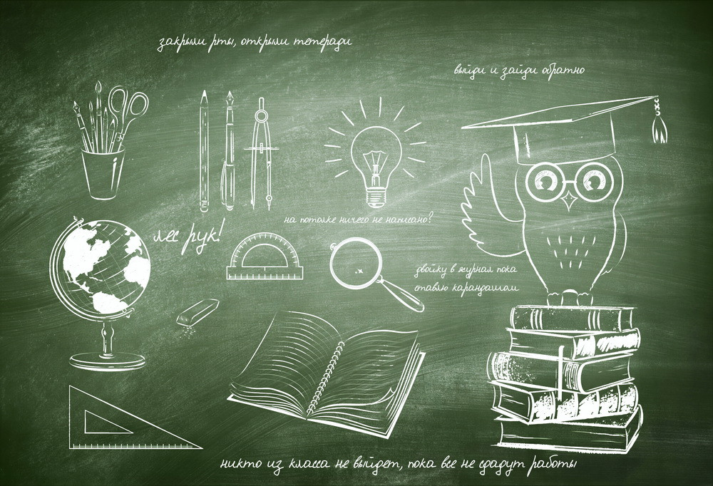 Разработка по запросу нашими дизайнерами изображения стилизованного под школьную доску с любым фоном, рисунками и надписями, выполненными мелом.